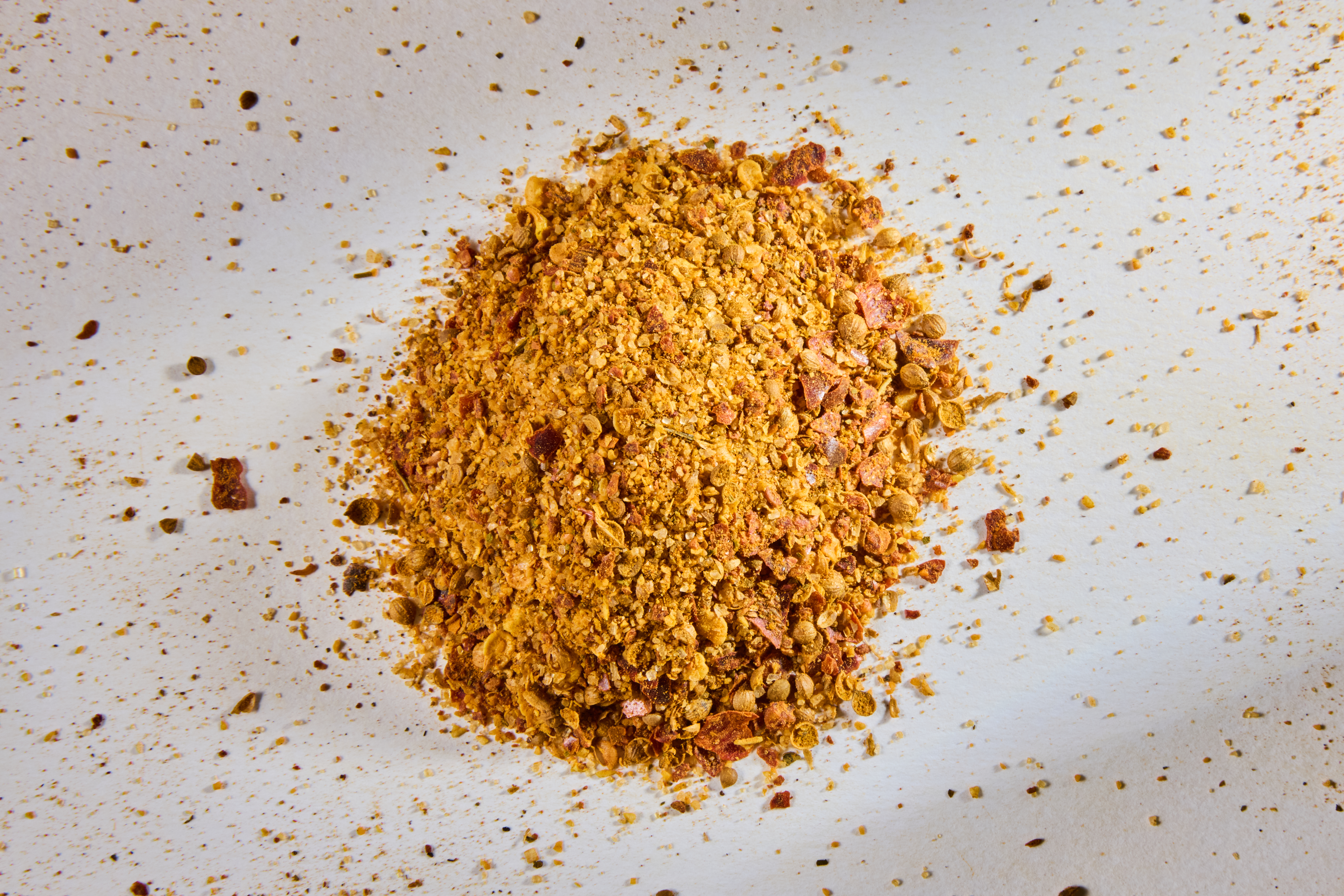 Meersalz, Chili, Knoblauch, Rohzucker, Korianderblätter, Zwiebel, Ingwer, Zitronenschalen, Pfeffer schwarz, Kurkuma, Muskatnuss, Bockshornkleesaat, Fenchel, Anis, Paprika